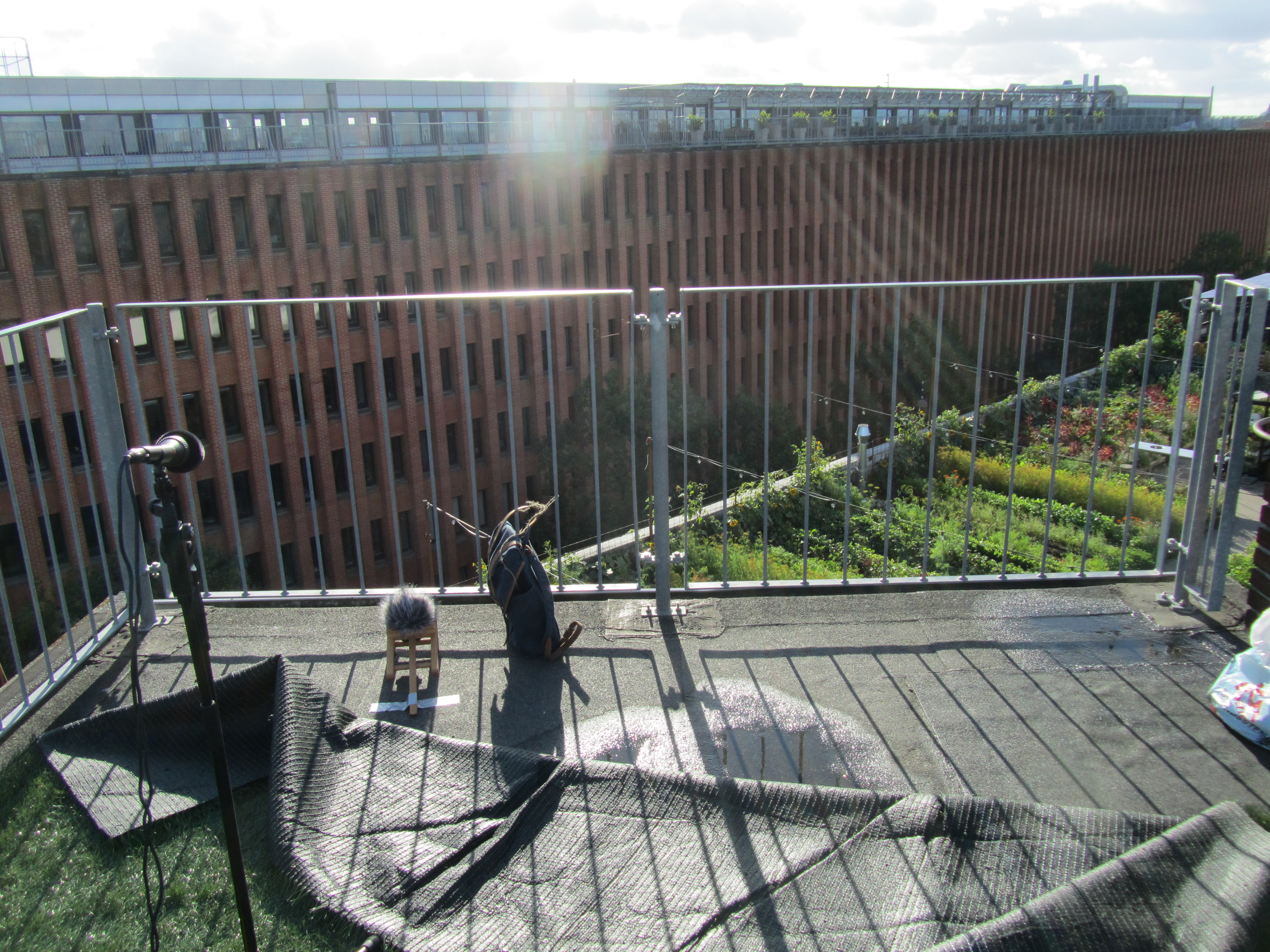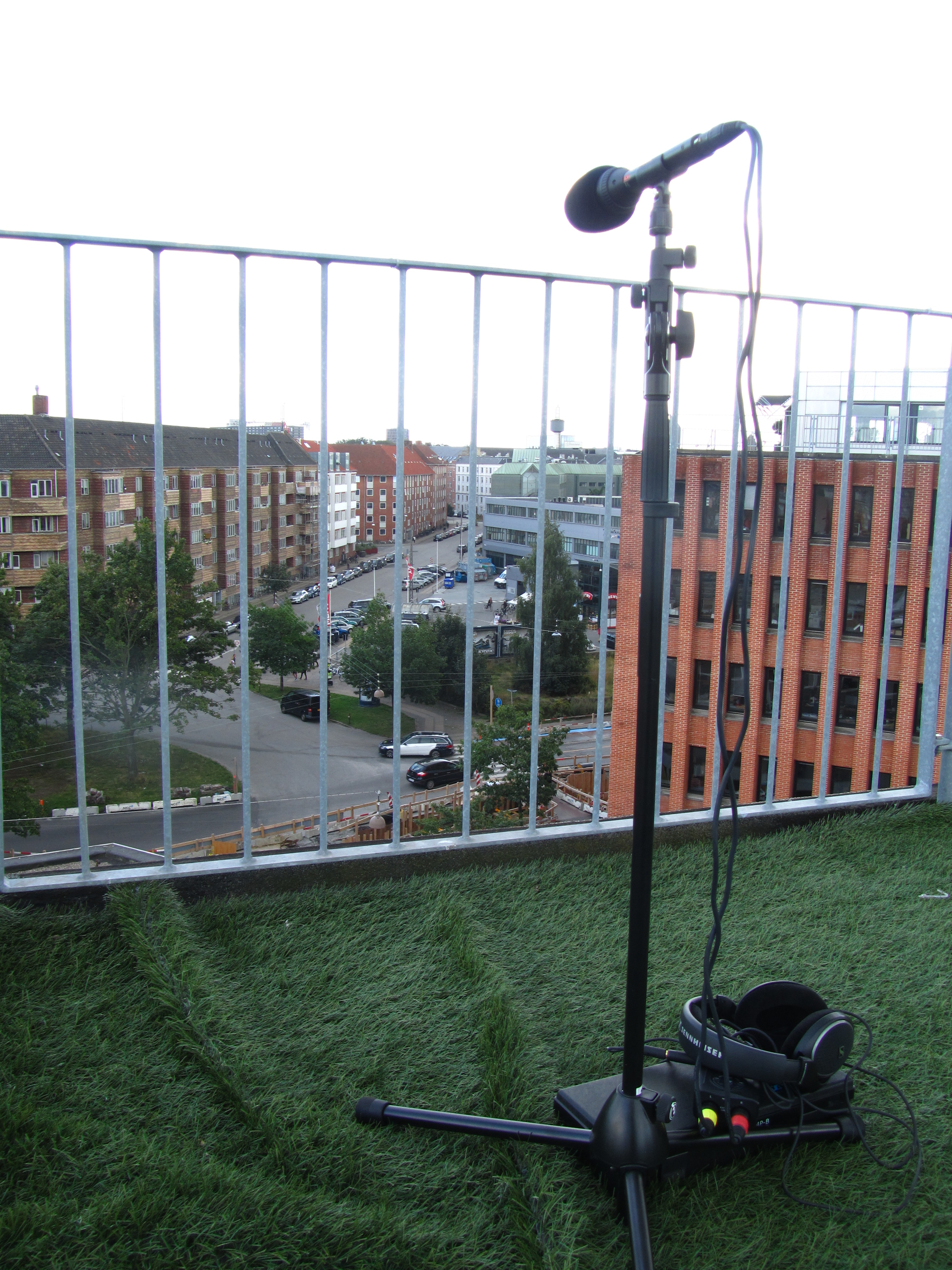 Efter at have lyttet og analyseret, er jeg gået i gang med redigeringsfasen, og arbejdet med at skabe en installation der udforsker de æstetiske potentialer, ved den særlige atmosfære der opstår, når man står på toppen af byen og ikke er omgivet af andet end vind.